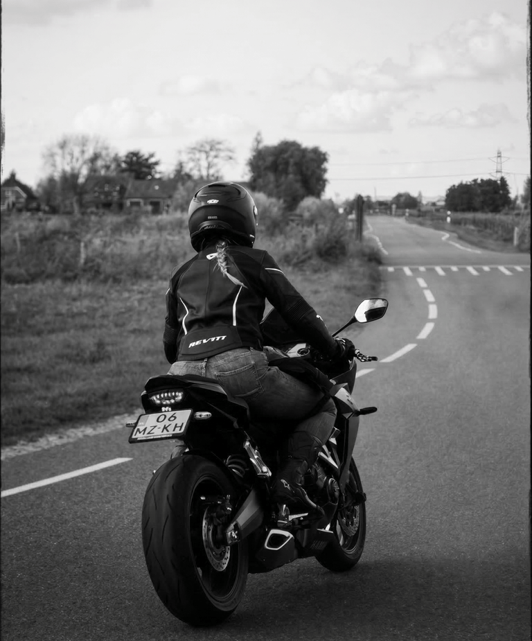 Hoi! Ik ben Fabiënne (26), en mijn liefde voor motoren begon als tiener achterop bij mijn vader. Hoewel ik na vier pogingen voor mijn autorijbewijs zwoer nooit meer een voet in het CBR te zetten, kroop het bloed waar het niet gaan kan. In 2024 hakte ik de knoop door: F*ck it, ik ga zelf rijden!